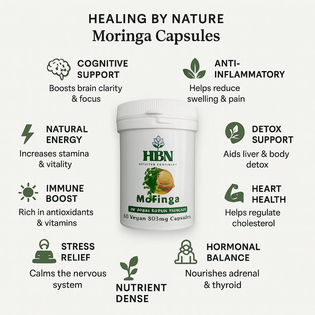 Healing by Nature’s 600 mg Moringa capsules are made from pure, whole-leaf Moringa with no fillers, binders, or extracts. This is clean, plant-based nourishment you can feel.